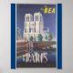 Paris is lettered in pink on a blue background. There is a romantic setting and a bridge. It is very pretty and public domain.