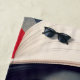 Beautiful Parisian woman in a white hat and red sunglasses with modern abstract background. Beautiful female elegant fashion art portrait.
