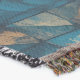 A quality printed throw has its advantages. This is a much finer weave throw than its loopier cousins, and though lighter, it is worth the investment for custom room accessorizing. The back is much prettier than the typical brown, and the fringe on the long sides very vivid, the selvage nicely done. Before photographing, I washed the throw in cold water, delicate, with a thicker woven throw the same size. On tumble dry low, this throw was dry in half the time as the other. This is a very practical quality if you use throws for furniture covers or to wrap up in frequently. The sleekness of the fabric makes it a great layer for accenting or protecting without the feeling of sitting on too much stuff. Perfect for napping or when you feel a light chill coming on. The color printing is beautiful and on this fabric, matched the design and color of my Photoshop image. This is an advantage for blending room fabrics and colors. The fringe on the short sides prints the colors from the design image and therefore varies from the side fringe. I streaked a white fractal line through the plaid pattern to give the illusion of weaving. This printed as crisp as an illusory thread, and put some white in the short side fringe, showing another advantage of print vs loomed- for artistic purposes, line lines, detail, and color integrity can be planned and preserved. My loomed throws have color limitations and more of a needlepoint texture. Print throws reproduce an exact image. The throw felt a little stiff straight out of the package, but this went away in the first delicate wash. Of course I searched the wash water for ink or bleeding and there was none.
