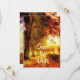 Fall Christian Wedding Save the Date Card depicts a photograph with red leaves on beautiful autumn trees overlooking a nature path bordered by an old wooden fence.. Inspirational quote on back ~ "GOD has led two lives to take one path."