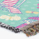A quality printed throw has its advantages. This is a much finer weave throw than its loopier cousins, and though lighter, it is worth the investment for custom room accessorizing. The back is much prettier than the typical brown, and the fringe on the long sides very vivid, the selvage nicely done. Before photographing, I washed the throw in cold water, delicate, with a thicker woven throw the same size. On tumble dry low, this throw was dry in half the time as the other. This is a very practical quality if you use throws for furniture covers or to wrap up in frequently. The sleekness of the fabric makes it a great layer for accenting or protecting without the feeling of sitting on too much stuff. Perfect for napping or when you feel a light chill coming on. The color printing is beautiful and on this fabric, matched the design and color of my Photoshop image. This is an advantage for blending room fabrics and colors. The fringe on the short sides prints the colors from the design image and therefore varies from the side fringe. I streaked a white fractal line through the plaid pattern to give the illusion of weaving. This printed as crisp as an illusory thread, and put some white in the short side fringe, showing another advantage of print vs loomed- for artistic purposes, line lines, detail, and color integrity can be planned and preserved. My loomed throws have color limitations and more of a needlepoint texture. Print throws reproduce an exact image. The throw felt a little stiff straight out of the package, but this went away in the first delicate wash. Of course I searched the wash water for ink or bleeding and there was none.