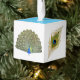 Beautiful peacock feathers on white Cube Ornament. Elegant turquoise and white cube! Ideal for enlightened spiritual people!