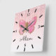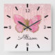 Beautiful Personalized Pink Butterfly Square Wall Clock