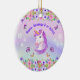 Beautiful, Personalized Unicorn Ornaments for Girls or Unicorn Gifts for Adults. You can Change Text COLORS and or TRANSFER this design to THOUSANDS of other Ornaments, Gifts, Party Supplies and more. Rainbow Pastel Pink, Purple, Green colors, Butterflies and Garden of Flowers. So pretty. The back has a larger unicorn.