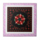 The composition is symmetrical and layered, focusing attention on the central floral motif, which is beautifully surrounded by a square border and an outer border adorned with heart shapes.