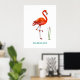 Beautiful Pink Flamingo Bird & Reed Plant on White Poster. Text can be personalized.