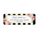 Beautiful Pink Flowers Classic Black White Stripes Return Address Label.