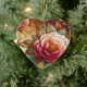 Pink flowers are on the front and on the back of a heart-shaped ceramic Valentine tree ornament.