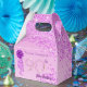The birthday favor box features gleaming Falling Pink Glitter on Pink gradient with Bright Stars. The Gold and Pink Glitter