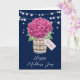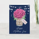 Beautiful rustic floral Happy Mother's Day card featuring a pink hydrangea and baby's breath bouquet inside a mason jar with a custom tag. Easily personalize this template to create a unique Mother's Day card. This template can be personalized to any occasion.