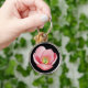 Big bold beautiful pink magnolia flower on black with Mom text key chain.