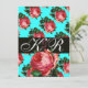 BEAUTIFUL PINK ROSE AQUA BLUE TEAL FLORAL MONOGRAM INVITATION