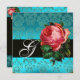 BEAUTIFUL PINK ROSE BLUE BLACK DAMASK MONOGRAM INVITATION