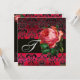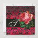 BEAUTIFUL PINK ROSE FUCHSIA BLACK DAMASK MONOGRAM INVITATION