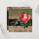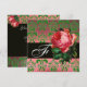 BEAUTIFUL PINK ROSE GREEN BLACK DAMASK MONOGRAM INVITATION