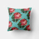 Elegant ,colorful vintage floral design,red pink cabbage roses with green leaves on aqua blue teal background.