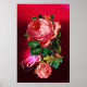 Elegant ,colorful vintage style floral design, pink cabbage rose in red burgundy background..