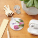 This key ring has pink tulips in the lower right. Purple script is available for recipient's name (currently reads: 'mom'). Text can be personalized or deleted.Cute gift for mother's day or Valentine's Day.