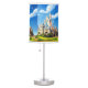 I have purchased other similar lamps. I use them as extra light for guest's. They are inexpensive, easy to assemble and good height for reading. I like that there are many pre-made shades to choose from and that, like this one, you can use your own art.