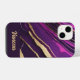 Make a statement with this purple and gold marble design cell phone cover. This exquisite case features a mesmerizing marble design in stunning purple and gold tones, giving your device a unique and eye-catching appearance. Add a personal touch by customizing it with your name, creating a stylish and distinctive accessory that not only looks fabulous but also keeps your phone protected. Embrace your individuality with this enchanting marble design that stands out in the crowd.