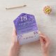 This Purple Glitter, Number Birthday card combines an invitation with an easy-to-tear off perforated RSVP postcard. It is easy to use and easy to customize.