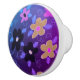 Stylish cabinet pull in a flowered design of black, pinks, and purples with blue. The dark brown flower can be switched to any color of your choice.