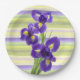 Beautiful Purple Iris Watercolor Stripes Pattern Paper Plates
