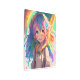 Beautiful Anime girl with rainbow background, Colors used are pink, teal, orange, blue, purple and blue. Cute and colorful children's Ai art. generatviecontent