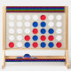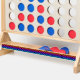 At the heart of the Fast Four are four oversized game pieces, each adorned with a bold, rainbow-hued checkered design. The warm, earthy tones of the natural wood provide the perfect canvas for the eye-catching pattern, creating a visually striking piece that is sure to command attention.