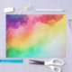 Tissue paper with a watercolor background featuring colors of the rainbow.