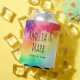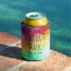 Can cooler with a watercolor background featuring colors of the rainbow.