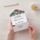 Rainbow rose all in one wedding invitation with hand-drawn rose arrangements with greenery and baby's breath. The other side of the invitation, which will feature as an envelope, is white with more colorful rose bouquets.