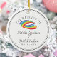 Pretty rainbow abstract wedding keepsake Christmas ornament with two beautiful arcs of color above your ceremony date and names. This simple colorful newlywed gift is perfect for a classy LGBTQ couple getting married in the afternoon.