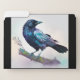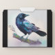 File folder trio with a lovely watercolor drawing of a crow. Dark blue and vibrant purple colors accentuate the beauty of this bird.