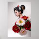 Beautiful Geisha in a Red Kimono with artistic overlay of Red Flowers