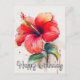 This lively birthday postcard features a beautiful depiction of a red tropical hibiscus flower. It is an ideal choice for mothers, daughters, grandmothers, friends, family, and colleagues. #Colorful #Retro #Vintage #Girlfriend #Wife #Mother #Girly #Pretty