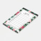 Floral to-do notepad with black and white stripes, red poinsettias, pink and red roses, mistletoe, and greenery, a practical checkbox list, and your name.
