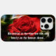 Beautiful photo of a red rose is featured on this phone case, with verse, "Beautiful is the rose but not as lovely as the human Soul". Makes a great gift for Valentine's Day, birthdays, anniversaries and more. This Tough Apple iPhone 15 Pro Max Case helps protect your cell phone, in a good looking case!