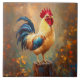 This beautiful painting of a rooster showcases its graceful plumage, bathed in warm tones that highlight the bird's elegance. With its striking colors and intricate details, this artwork captures the rooster’s lively and proud nature in a serene, rustic setting.