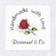 Beautiful red rose and custom text labels; ideal for all those clever folk who make clothing for friends or for sale in a small business. Shown here with a beautiful rose image and text which reads Hand Made With Love, All this and your name/business name are fully and easily editable.