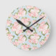 Beautiful rose pattern with blue polka dots round clock