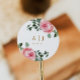Pretty watercolor floral pink roses and greenery sticker with bride and groom's monograms and wedding date.