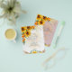 Featured here are pretty Sunflowers, Pampas Grass and green leaves. The text is overlayed across the design which is opaque behind the text.