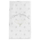 Design features an image of a descending dove holding an olive branch as full image on both sides. Your text is displayed as an arch at top in silver-colored lettering. Background is white with the image of sparkling silver stars all around.