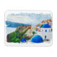 Great Santorini Greece artwork showing the amazing blue roof architecture and costal view of the greek island. Great souvenir and gift idea.