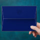 A beautiful Sapphire Blue envelope with same color butterflies appearing to fly from the envelope, will thrill your guests as they open the envelope.
