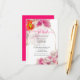 Details wedding enclosure card - Modern text fits nicely inside this beautiful sheer white gold edged arch frame that shows the underlying fantasy bright fuschia scarlet peony flowers edged in gold - original artwork © by WhimsicalArtwork™.