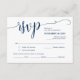 This is the beautiful Modern script, RSVP (Respond) Enclosure Card, in Navy Blue font, where you can edit, change color and format it as per your design requirement, with meal options, reserved seats, number attending and song request option.