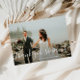 A beautiful script design with a wonderful image of the bride and groom. The newlywed's image and back color and text can be personalized. Add a personal thank you message at the back.
