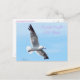 A Postcard with a beautiful, white Seagull flying against a blue sky. This photograph is Copyrighted, 2015, by me the photographer.